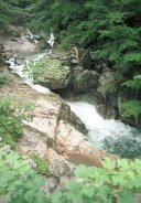 The Ji-Zamurai was in the process of offering 13 silver pieces to the priest, who is very pleased. "There is a path leading up the valley to a hot spring. That is where we bathe." He has a servant fetch them some towels and hands Yoshi Yeesu a carved wooden duck. Miyoshi thanks him and they leave, collect Kachamaru and Kokuma and head up the path to the hot springs. The priest stays in the town to wait for sunset. The path leads up the valley side, then down into a ravine. At the bottom is a small shack, just a set of cubby-holes with a roof and a room for changing. A plaque on the wall says, "Hiratanai Rotenburo". From there a cinder path leads to a small stream that bubbles out of the hillside and billows clouds of steam into the cold air. The stream falls through several rock pools to one at the end of the path - evidently the one at the right temperature. The three men and the boy bathe in the yellowish water and relax. Kachamaru takes his tanto out and has a shave; Kokuma doesn't. Feeling refreshed, the four return to the town at dusk.