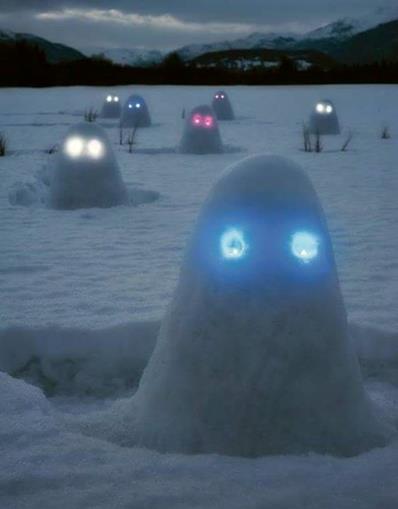 To celebrate their victory, they put the glowsticks into mounds of snow.